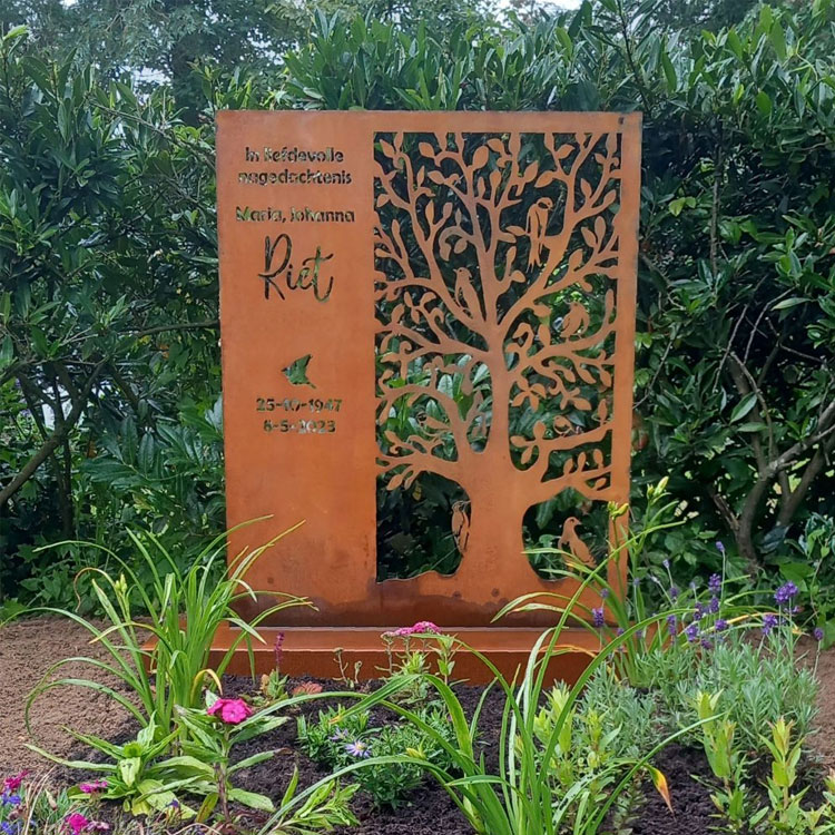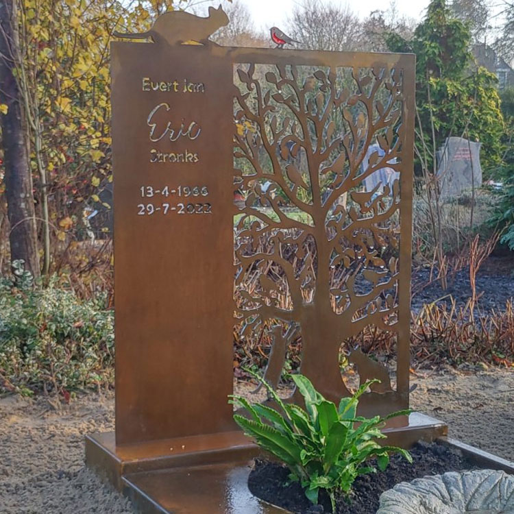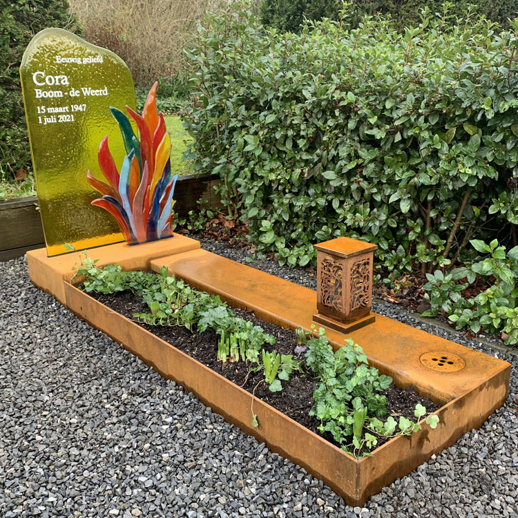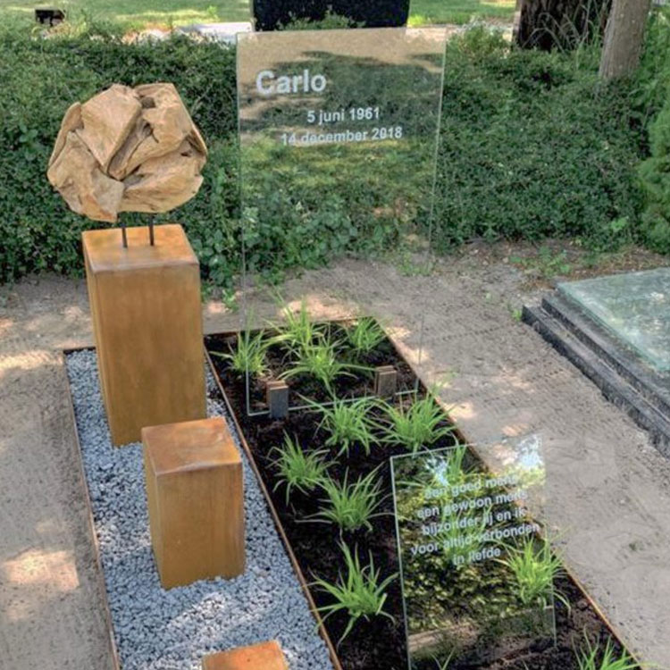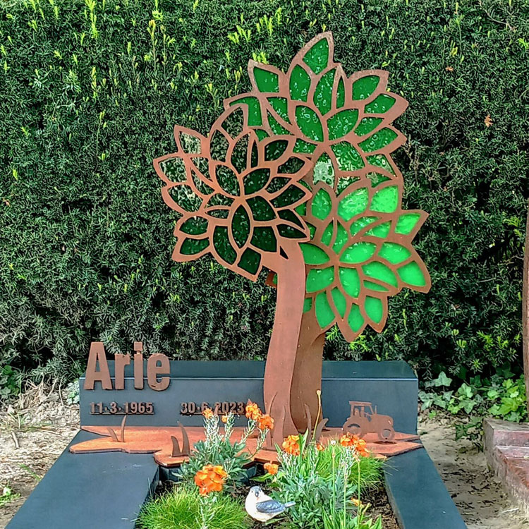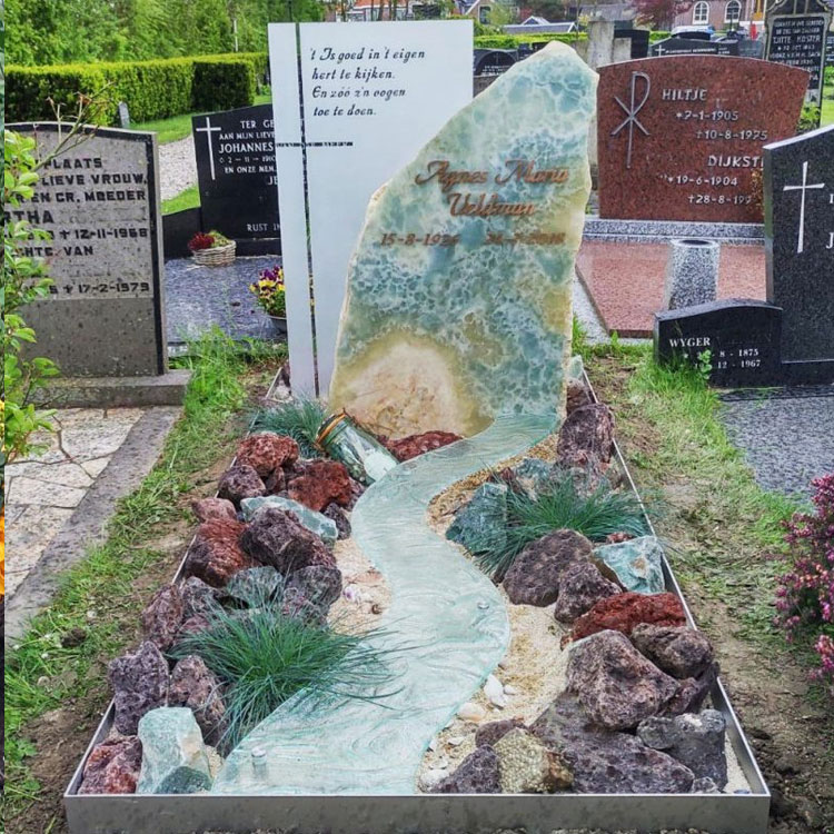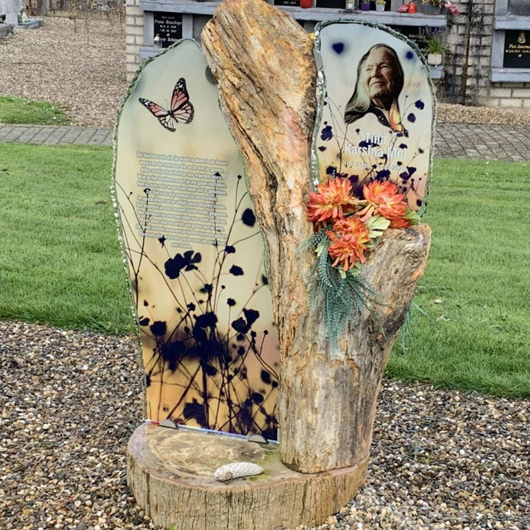 Naast glas is natuursteen het bekendste en meest gebruikte materiaal, maar ook prachtige ruwe stenen die de gevoelswaarde op een eigen wijze kunnen uitbeelden. Ook is het mogelijk om een heel bijzonder grafmonument voor je vervaardigen met materialen als onder meer RVS en Cortenstaal, versteend hout, brons en giethars. Het zijn allemaal stuk voor stuk materialen die verassende combinaties mogelijk maken en door ons atelier worden uitgevoerd.